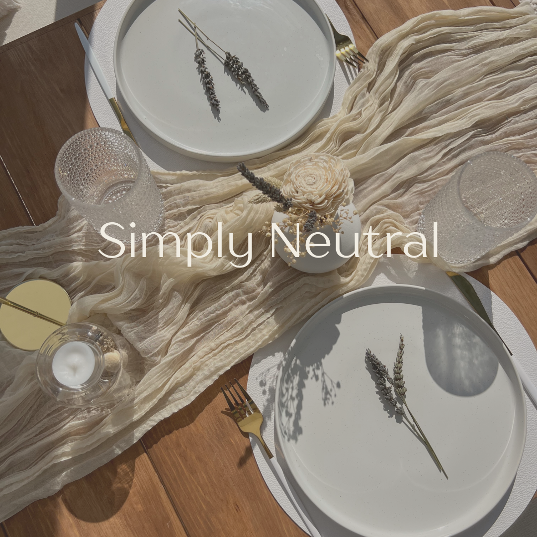 It's all about embracing simplicity and style with soft creams, muted grays, and gentle beiges. Perfect for a refined picnic experience, this collection features gorgeous dinnerware, dried or fresh florals, and table decor that effortlessly elevate any setting. Want to add a personal touch? Just let us know your preferred accent colors!